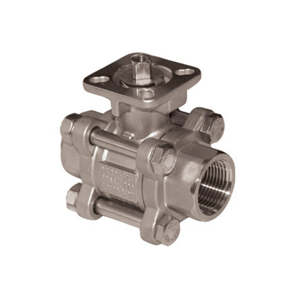 Jomar A1000-3 3 Inch Stainless Steel Direct Mount Ball Valve, 3 Piece 4 Bolt, Swing Out Body, Full Port, Threaded Connection, ISO Mounting Pad, 1000 WOG